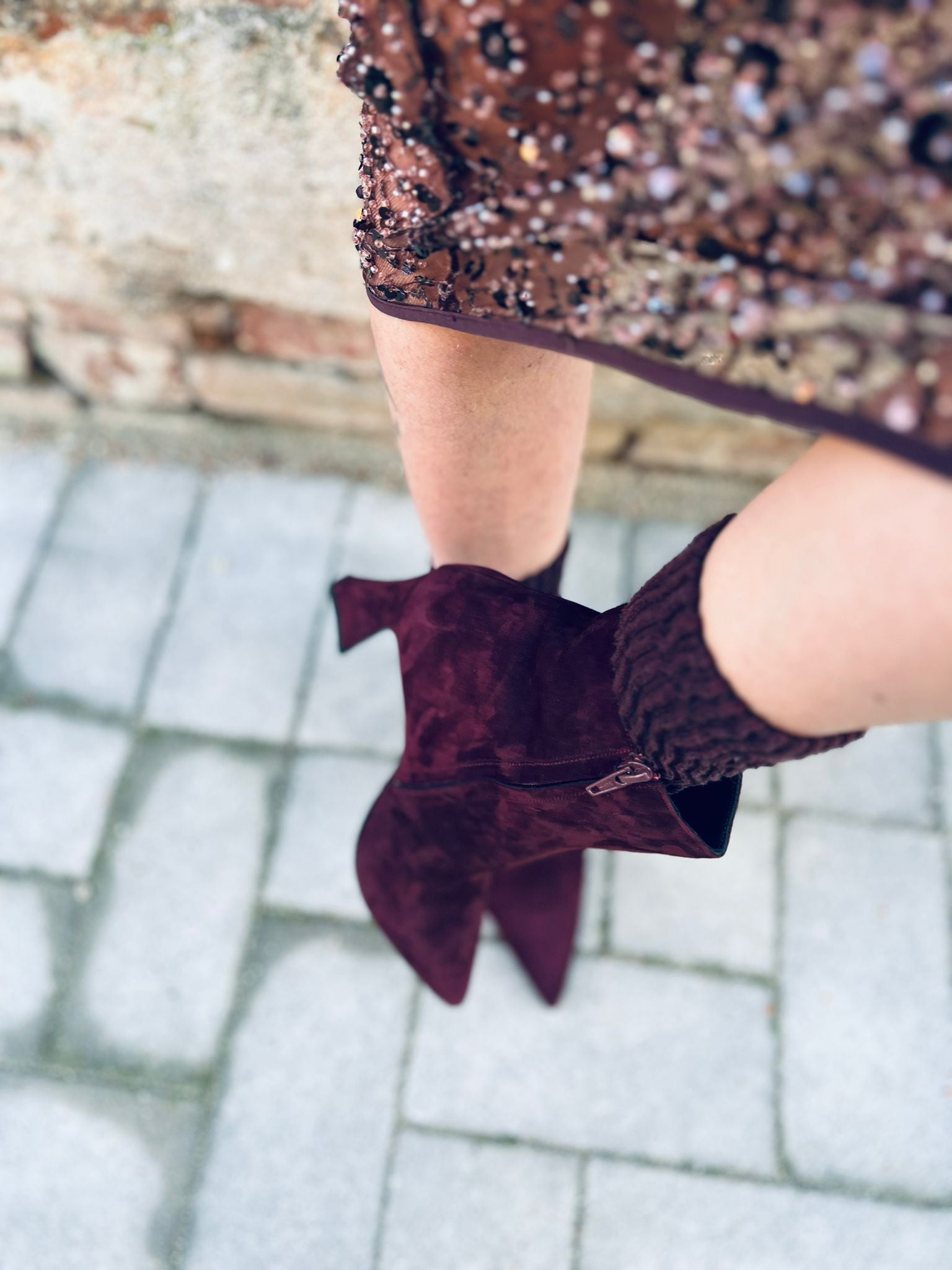 Lasciati sedurre dalla profondità e della ricchezza del Borgogna con questi splendidi ankle boots. Realizzati in camoscio morbido e lussuoso, gli stivaletti “Velvet Muse“ sono l’accessorio perfetto per dare un tocco di colore audace sofisticato i tuoi outfit invernali. Il design essenziale la texture vellutata ti fanno sentire eleganti alla moda in ogni occasione.