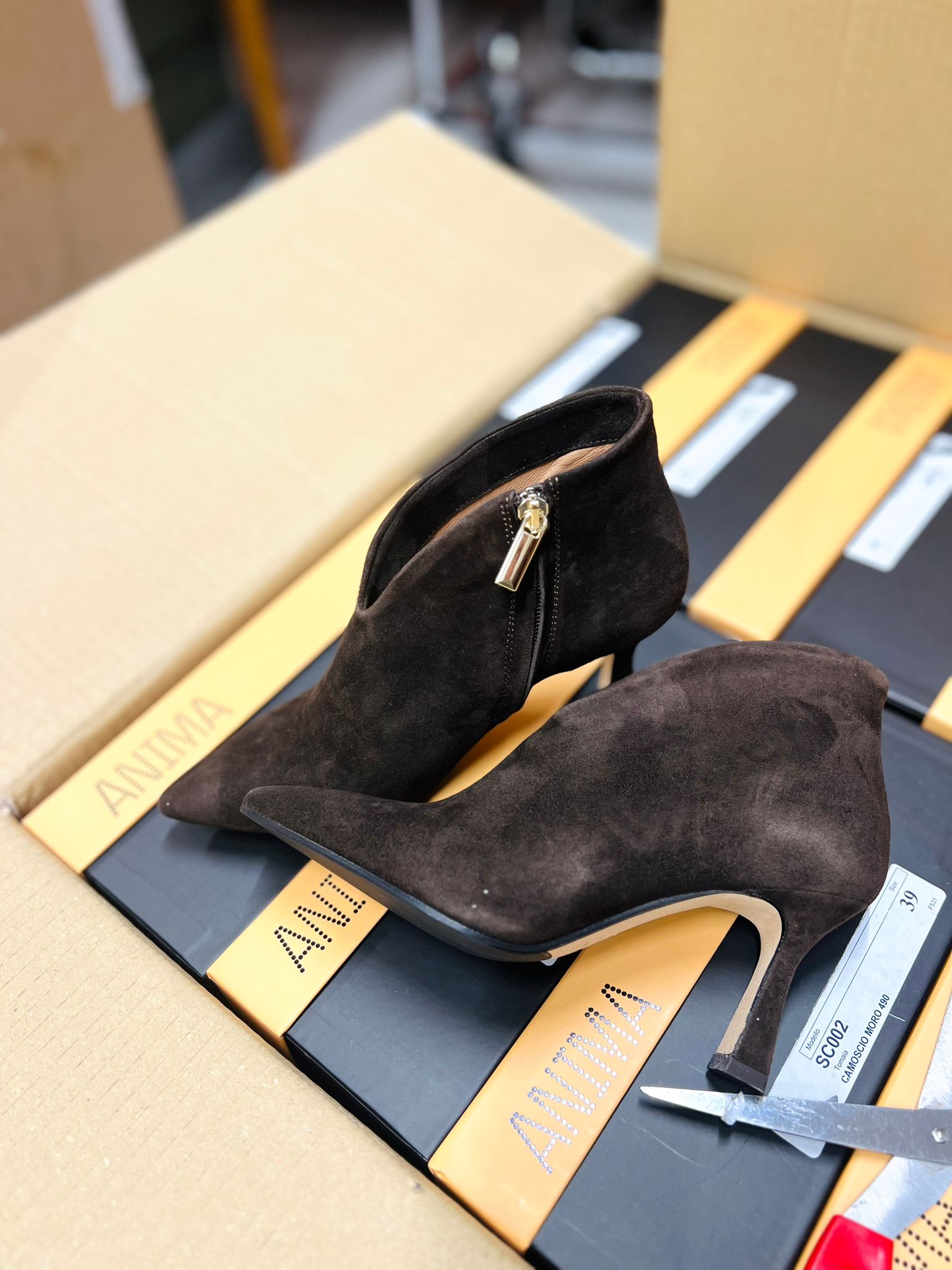 Raffinato, femminile e incredibilmente versatile: questo tronchetto in morbido camoscio color moro è il compagno ideale per elevare ogni outfit con un tocco di eleganza discreta. La linea affusolata e la punta sfilata slanciano la figura, mentre il tacco a stiletto da 7 cm offre il giusto equilibrio tra stile e comfort, perfetto per accompagnarti dalla mattina alla sera.