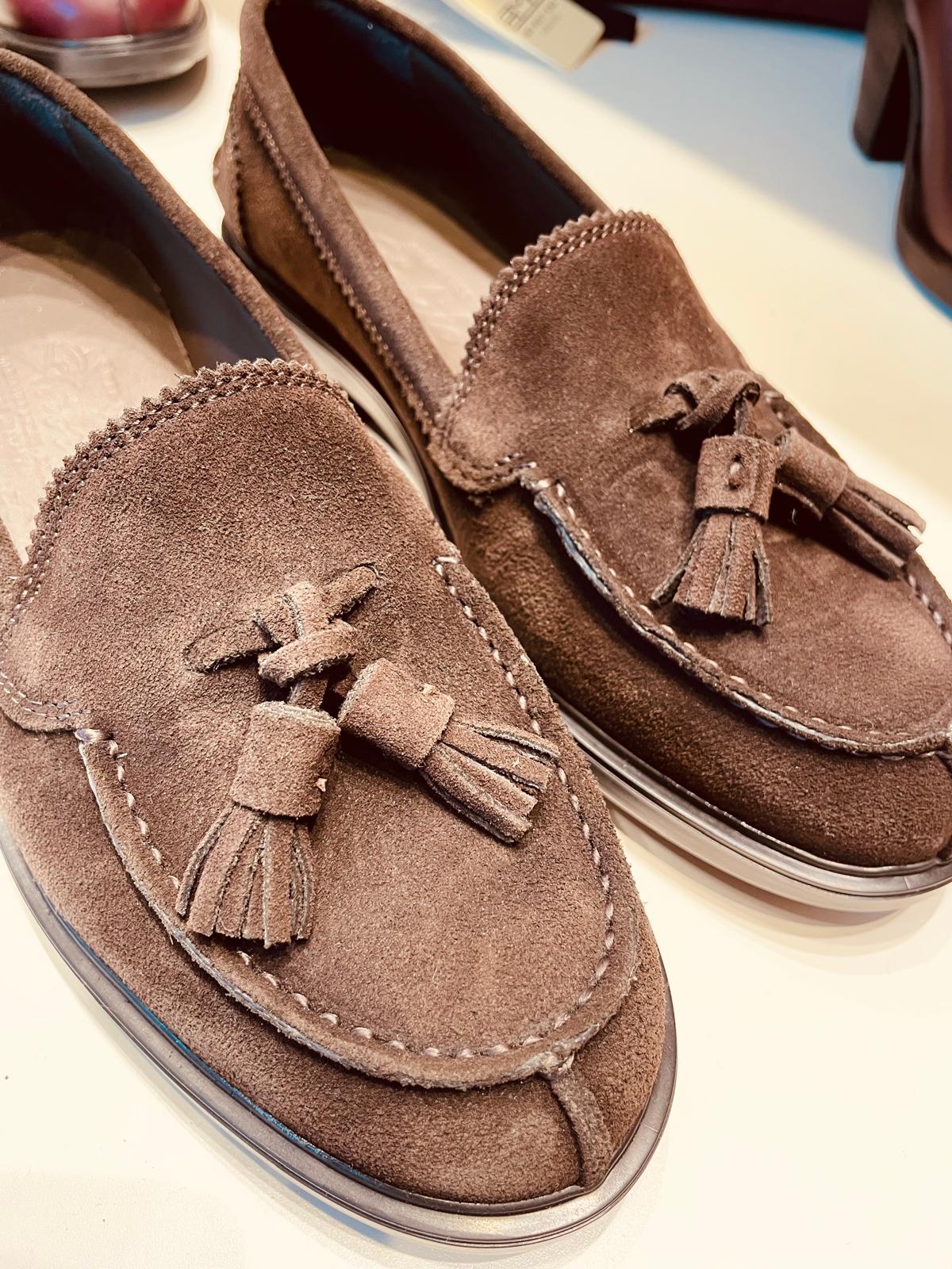 Questo Mocassino unisce un design classico a un tocco di modernità, rendendolo un pezzo essenziale per ogni guardaroba. Realizzato in pelle scamosciata di alta qualità, presenta un originale mascherina con frange nappine decorative che gli conferiscono un fascino unico. La suola in gomma spessa non solo assicura comfort a aderenza, ma giunge anche un tocco contemporaneo. Perfetto per un Look smart casual, si abbina splendidamente a pantaloni chino, gonne plissettate o jeans gamba dritta