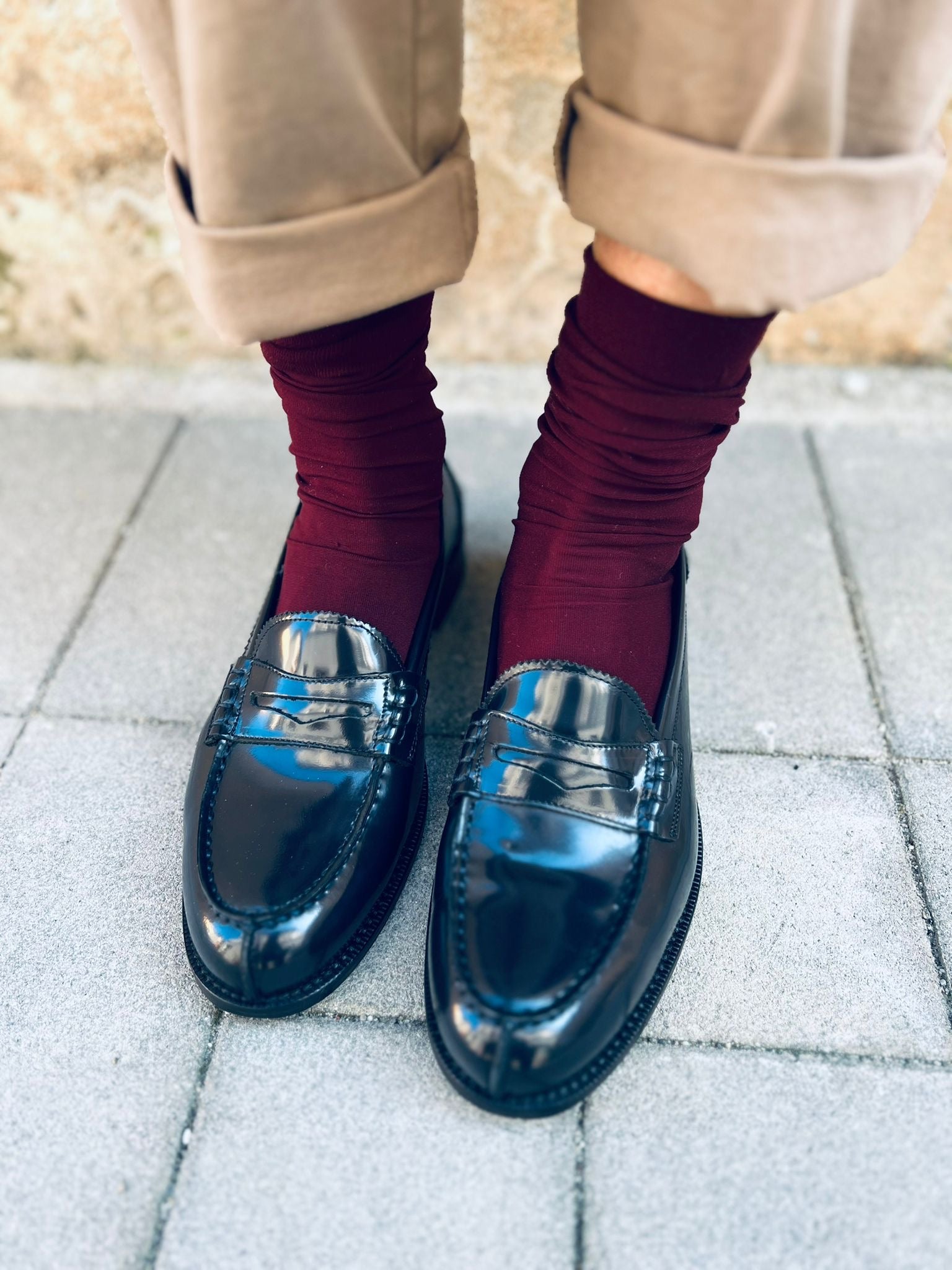 Mocassini penny Loafer È un pezzo chiave che fonde la tradizione col dettaglio della modernità grazie alla finitura lucida.perfetto per ambienti smart casual avanzati, che spaziano dall’ufficio informale eventi pomeridiani in città. È l’opzione ideale per chi desidera incorporare un tocco di personalità nel proprio guardaroba autunnale invernale, pur mantenendo una base di capi classici e strutturati.