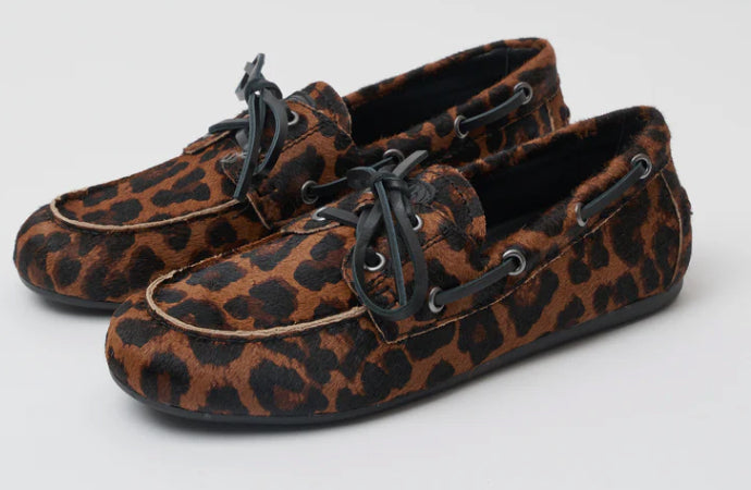 Aggiungi un tocco di carattere al tuo look con questo mocassino che unisce comfort e stile audace. La tomaia in cavallino presenta una vivace stampa leopardata nei toni del marrone nero, mentre i dettagli classici da barca, come i lacci in pelle nera gli conferiscono un tocco sportivo. la suola in gomma nera assicura un’aderenza sicuro una calzata comoda. Sono l’ideale per completare un outfit casual chic, perfetti con jeans skinny o pantaloni alla caviglia.