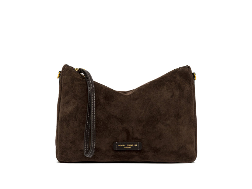 La borsa Nora Pouch by Gianni Chiarini Firenze è realizzata in morbida pelle scamosciata. È dotata di un cinturino in pelle che permette di portarla al polso e di una tracolla regolabile, entrambi removibili. Presenta una chiusura con zip per una maggiore praticità.